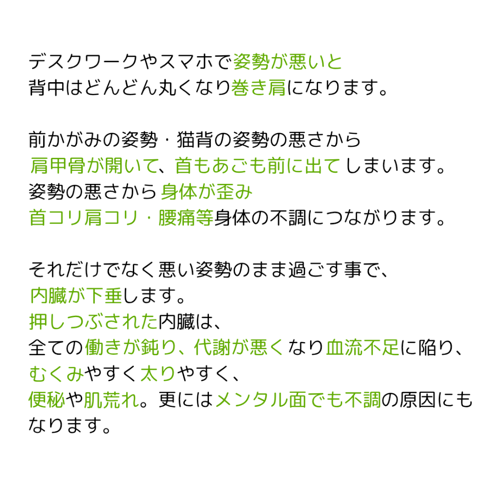 身体の歪み⇒ストレートネック、巻き肩、猫背、