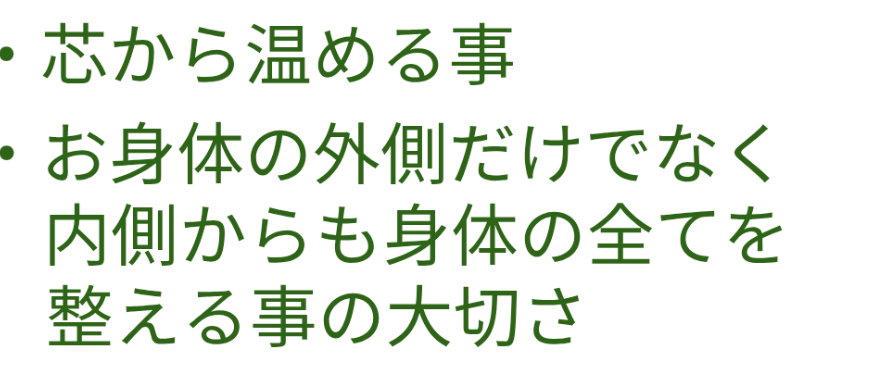 不調原因をとりこぼす事の無い様に、お身体の外側から内側までの、本当の全身へ